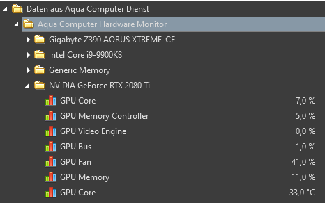 Ich würde gerne den GPU-Takt meiner Grafikkarte mit überwachen und dort anzeigen lassen. Dies scheint weder vom Mainboard noch vom Aquasuite-Dienst ausgelesen zu werden.