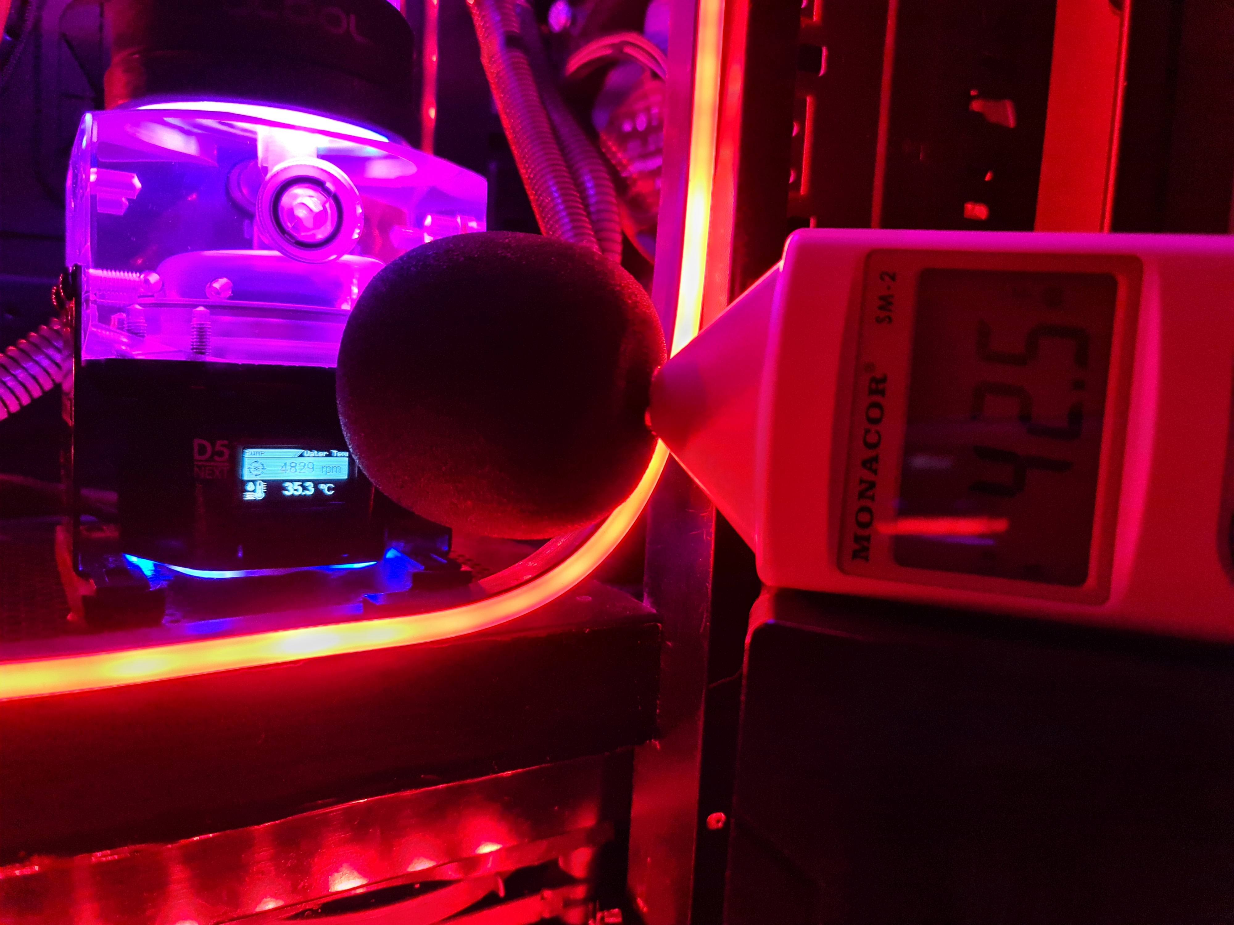 Meine D5 NEXT am HK Tube wird bei 100/ Leistung auch laut, die D5 meines Sohnes an einem Eisbecher ebenfalls, ich habe zwar kein Messgerät, beide Pumpen sind aber bei geschlossenem Gehäuse und ca. 1 m Entfernung bei Vollleistung deutlich hörbar.