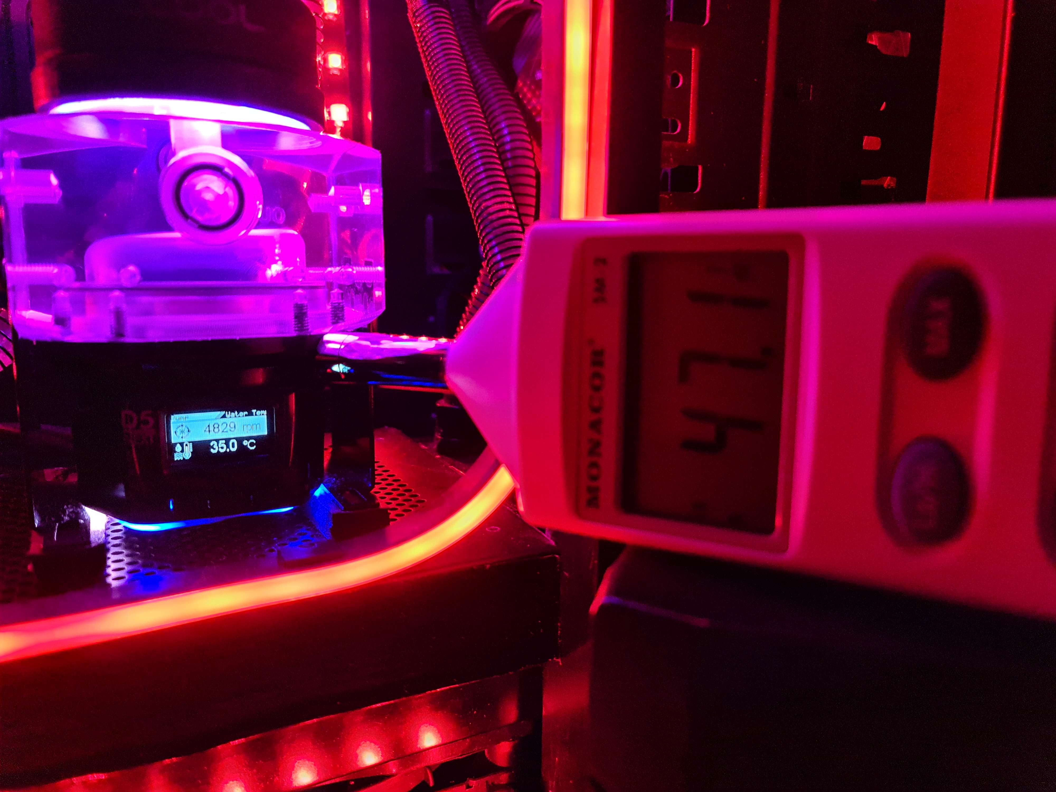 Aber das „Fiepsen“ der Pumpe in Kombination ULTITUBE D5 Next 200 PRO hört man sobald die Pumpe auf 4800 RPM läuft leider. Dreht man per Software die Leistung auf 60 % ist die Pumpe flüsterleise wie meine D5 Next Alphacool Eisbecher.