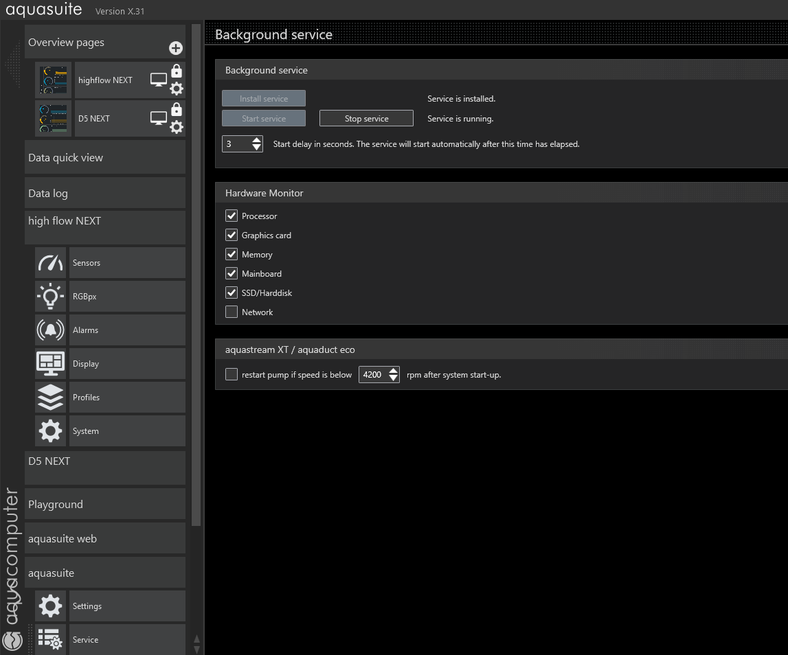 Ich kann die Einstellungen machen, der Service der Aquasuite läuft unter Admin, die Aquasuite speichert (siehe Screenshot), aber die Settings bleiben nicht bestehen.