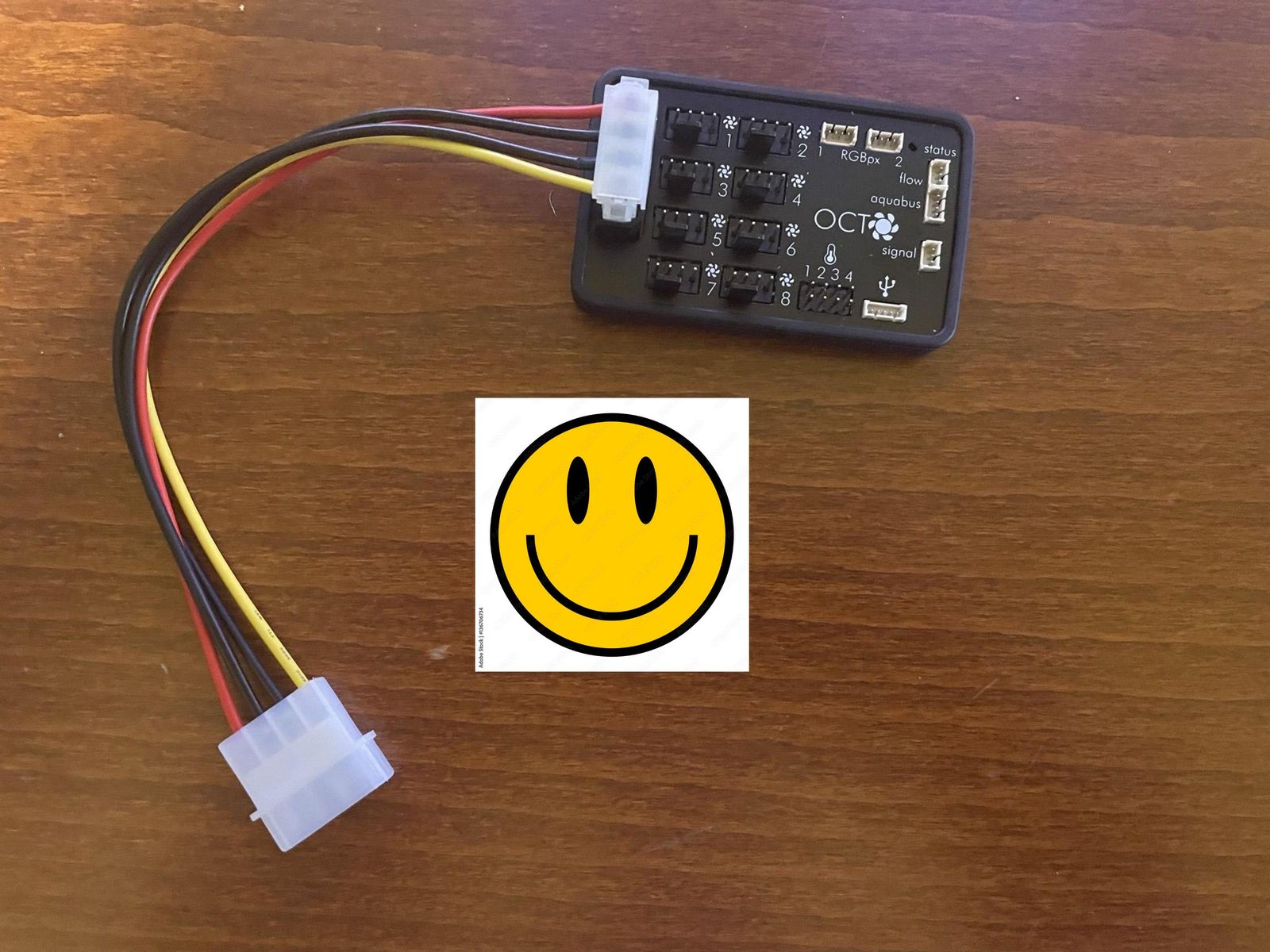 I considered SATA to Molex adapters but Aquacomputer put Molex power connectors on the Octo and the Farbwerk360 because the Molex connector has a higher maximum current and power rating than a SATA power connector. Both of these devices can pull a lot of current - the Octo has to handle 8 PWM ports at 2A each, and 4 RGBpx ports that could have up to 90 LEDs connected to each. The Farbwerk360 also has 4 RGBpx ports and can pull up to 8A on the 5V rail. I think a SATA power connector is limited to 4.5A on the 5V rail. In reality my loads would not hit these maximums so it would probably be fine. I am also considering how the various loads (pump, 2 x Farbwerk360, Octo, 2 x Hubby7 and an NZXT internal USB hub, 2 Corsair Lighting Node Cores,7 RGB fans, 2 USB powered internal stat displays, 756 LEDs, and several PCIE SSD drives) is distributed across the various outputs of my PSU. It adds up!