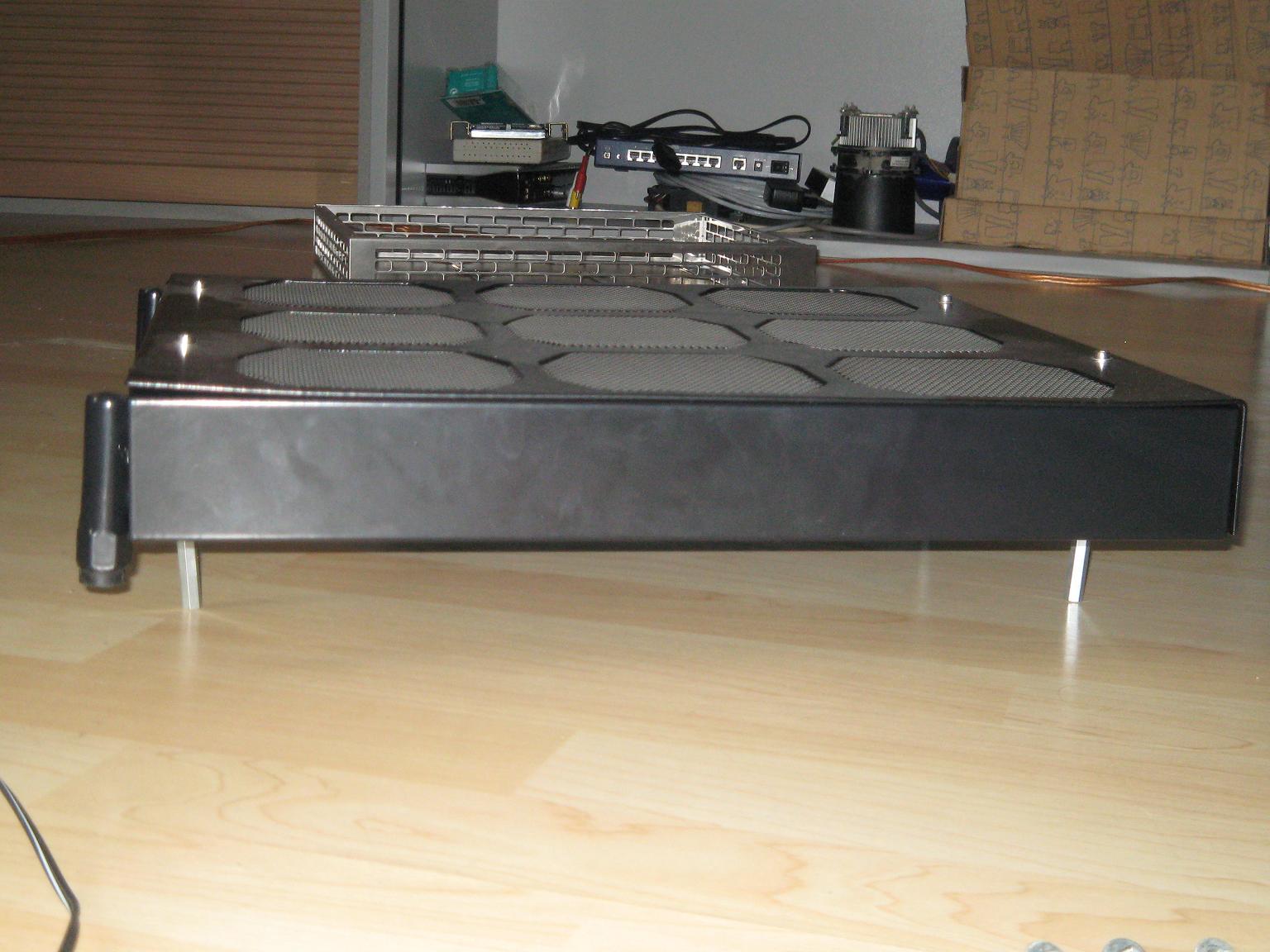 In der Breite passen die richtig gut, nur in der Höhe haben die ca 3cm zuviel. Wenn die mal nicht mehr wollen kommen 4x200er Lüfter drauf, die reichen auch vollkommen aus. -