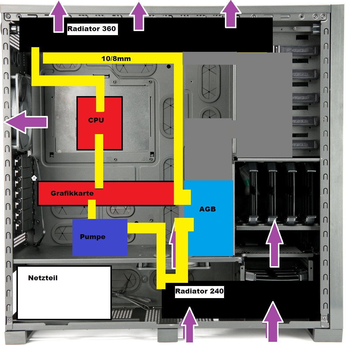 Anordnung Wasserkühlung Corsair 700D