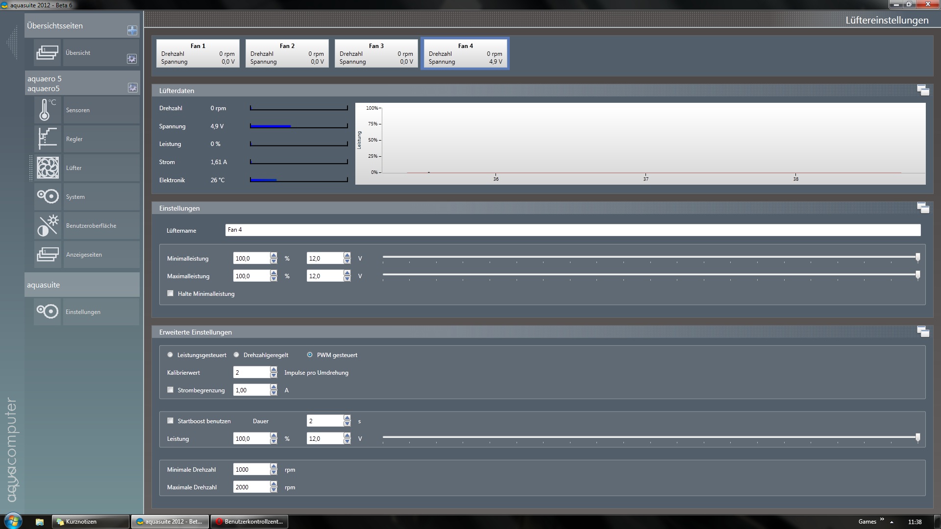 Als das aquaero kam, habe ich es angeschlossen um ein paar Tests durchzuführen; ging auch alles ohne Probleme.