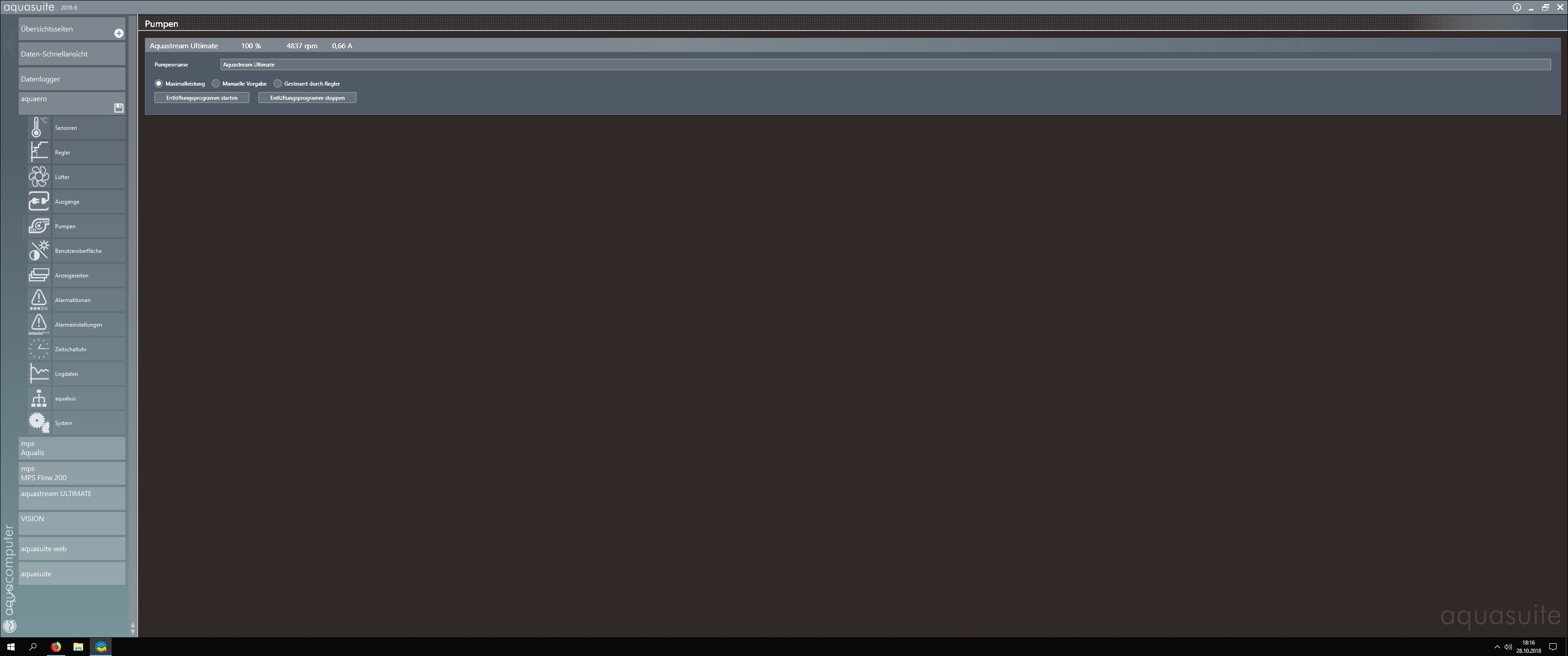 Entlüftermodus hatte ich unter Aquaero / Pumpen mit der Ultimate drin bei Version 2018-6