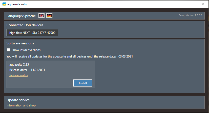 I am downloading the software from the download page. The installer identifies the version as x35, but when after I reboot, x31 is what shows up in the software. I even uninstalled aquasuite from my computer and then installed it using the software page's download, but still x31.