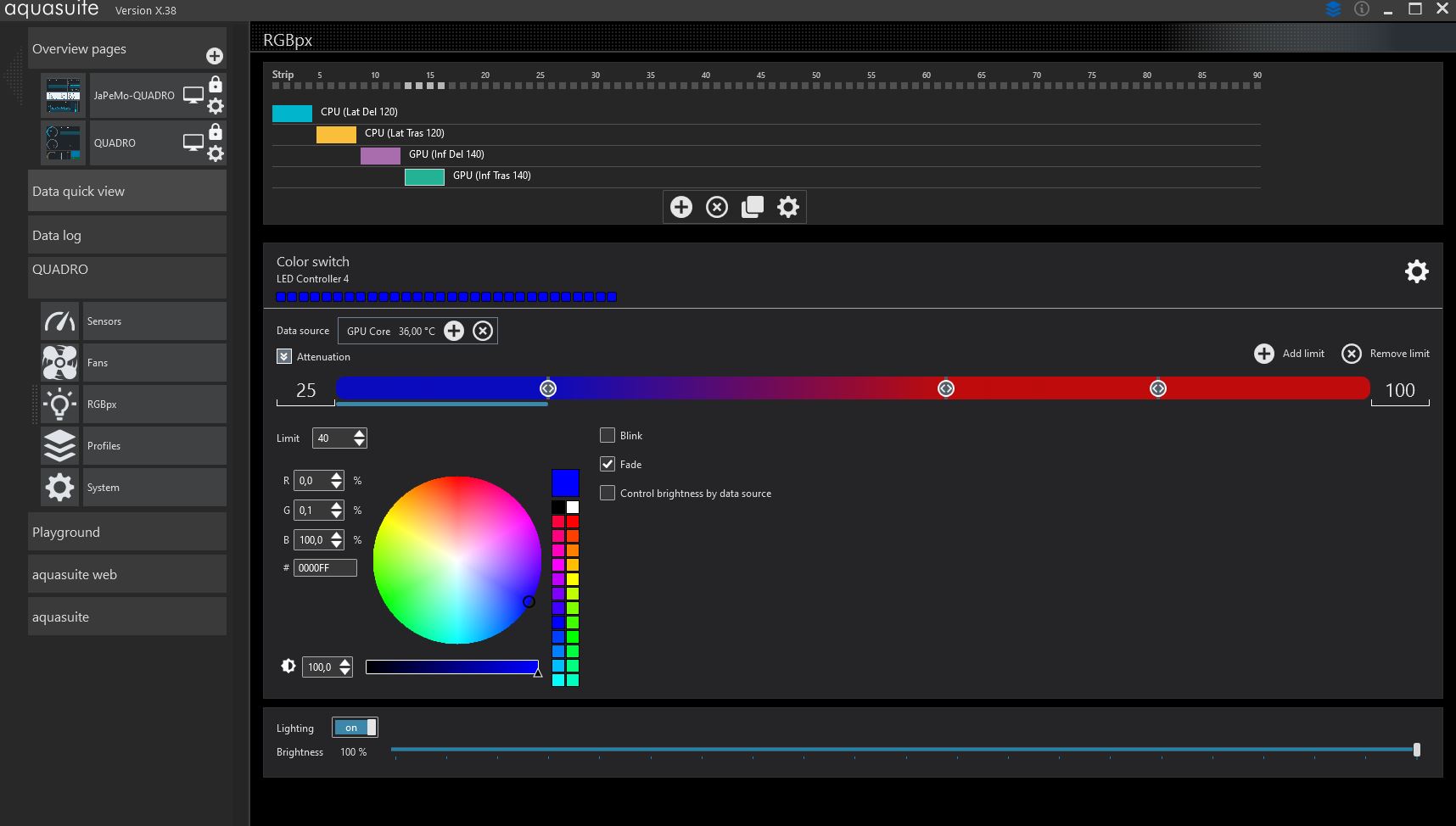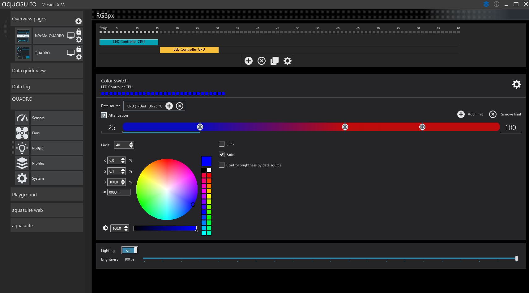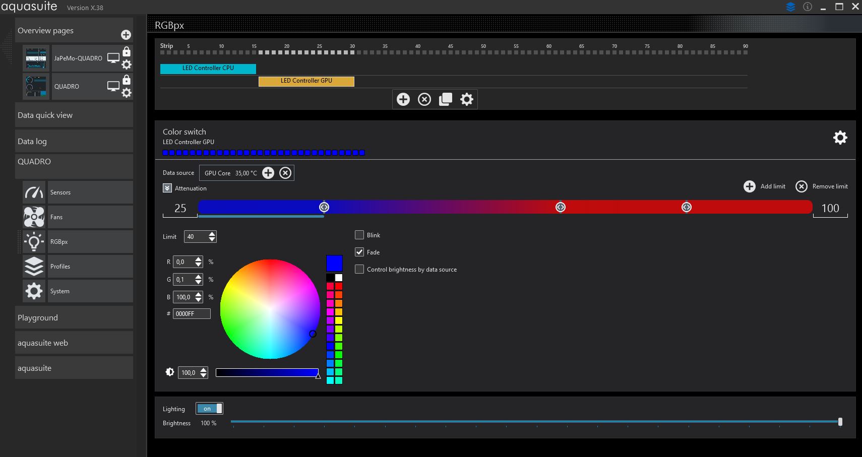 My intention is to configure them to give a range of colors depending on the temperature, 2 for the CPU and 2 for the GPU.