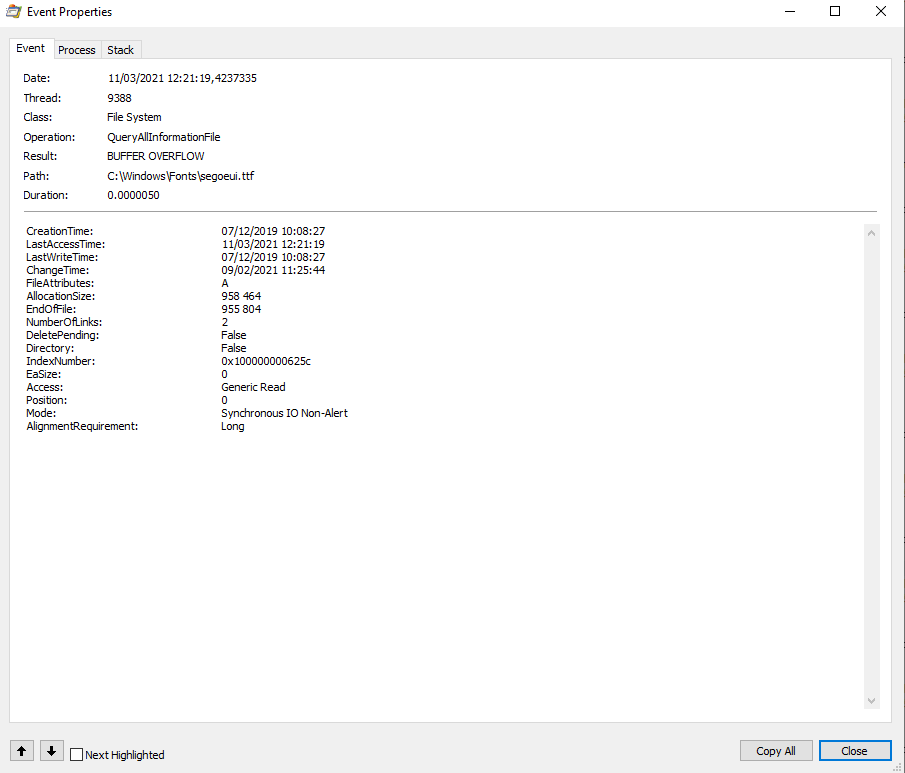 Sorry but I can't find what you want. What you gave me to download is process monitor, no process explorer. I don't know how this soft work, so give me more step to acced informations that you want pls !