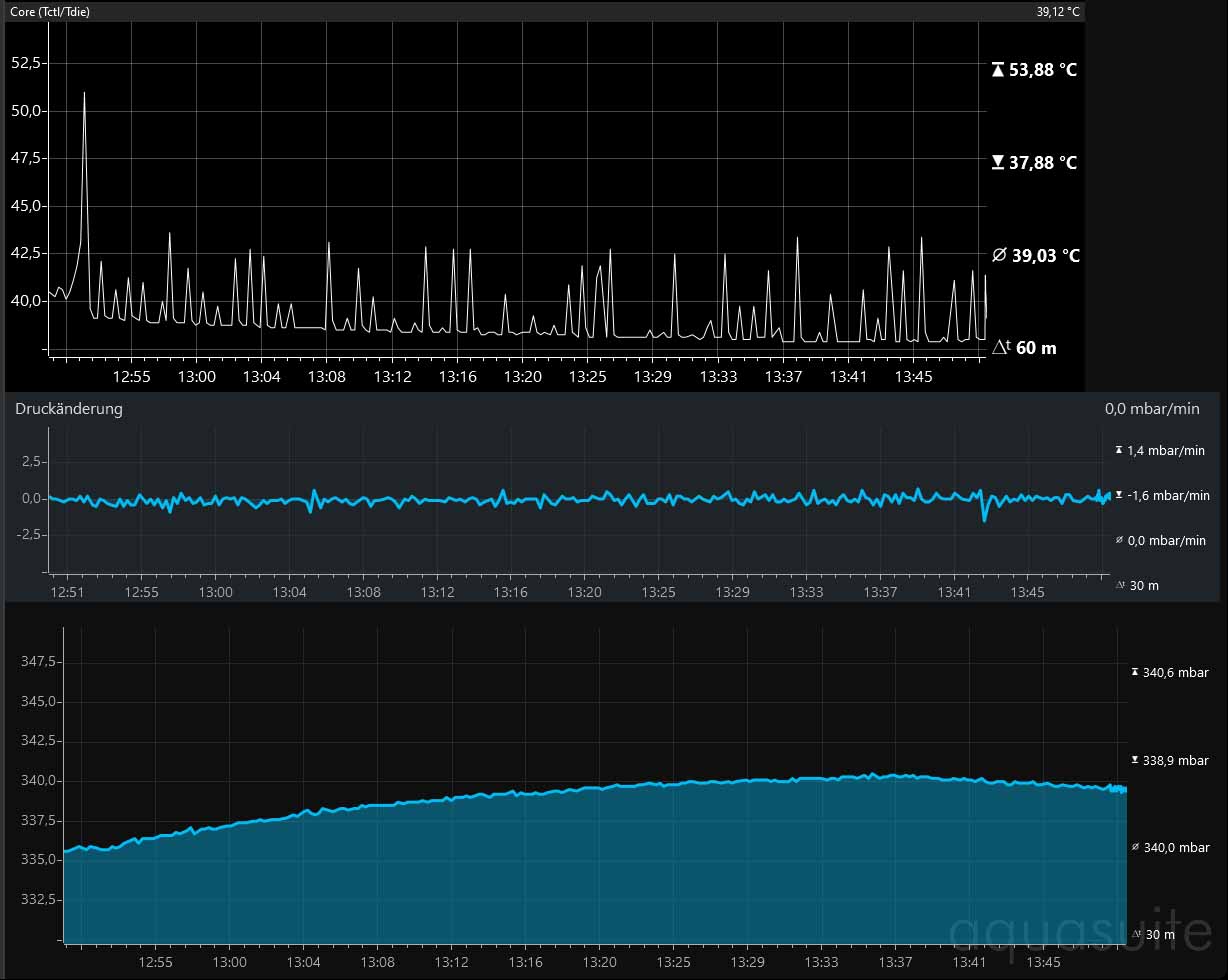 wobei man auch darauf achten sollte das identische Temperaturen (eventuell geöffnete Fenster) am Folgetag herrschen. Ich konnte schon Druckdifferenzen von 40 Mbar nur durch Öffnen des Fensters erzeugen.
