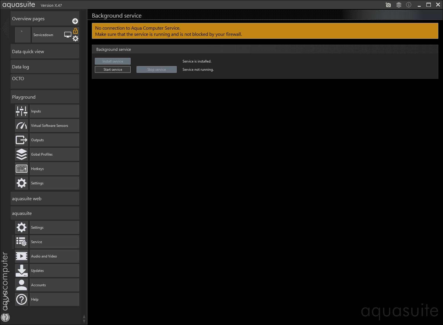 Right now i can see if it is not running only by opening Aquasuite. I couldn't find anywhere an option to get a windows notification pushed to warn me.