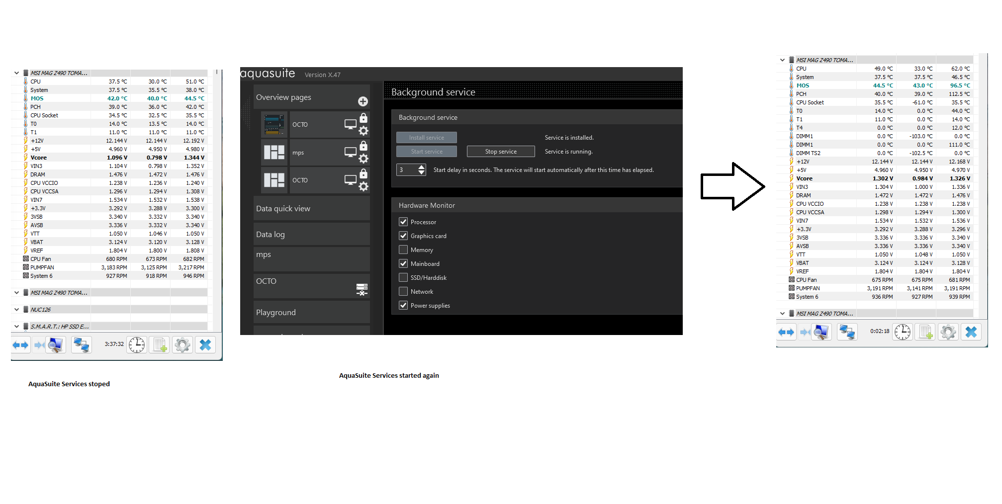 if you use HWinfo along with aquasuite, i'd just disable aquasuite monitoring altogether and poll everything from HWinfo. problem solved :p