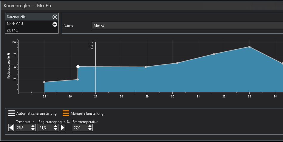 Wenn Du wirklich auf eine optimale Kühlung der GPU und jedes Grad wert legst, dann kannst Du unter Last, wenn Du zockst, eine höhere Pumpleistung verwenden. Dann hört man die Pumpe sowieso nicht mehr durch die Geräuschkulisse des Spiels. So mache ich das. Aber dafür habe ich keine Regelung sondern eine globale Profilsteuerung, die das Profil der D5 umschaltet auf eine höhere (aber auch wieder feste) Pumpleistung. Das ist besser als eine variable Steuerung.