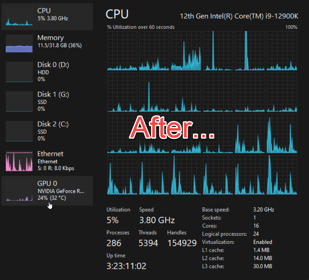 It's back to using almost nothing on the CPU, even with aquasuite opened.