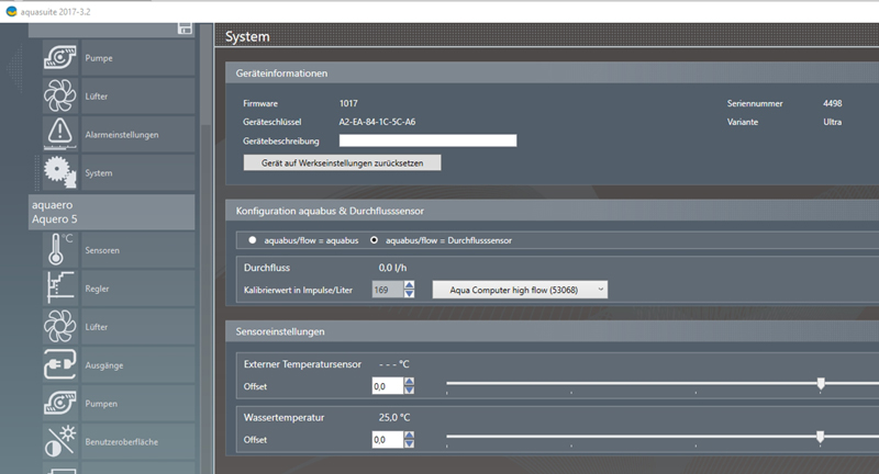 Habe es jetzt umgestellt auf aquabus und den Rechner neugestartet (Bild *_30). PC danach ausgesschaltet und Stromstecker gezogen.Du hast einen Screenshot der Pumpe gepostet. Wenn du an der Pumpe keinen Sensor angeschlossen hast kann die Pumpe auch keinen Durchfluss anzeigen. Und wenn du die Pumpe per aquabus mit dem aquaero verbunden hast und deine Einstellung auf "Durchflusssensor" steht machst du Dir eins von beiden Geräten kaputt.Der ist am Aquero5 über das dreiadrige Kabel angeschlossen.