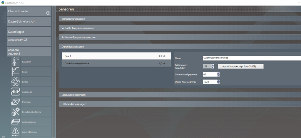 Durchflusssensor high flow G1/4 für aquaero, aquastream XT ultra und poweradjust Nr. 53068. Der ist am Aquero5 über das dreiadrige Kabel angeschlossen.du hast an deiner aquastream XT einen Durchflusssensor angeschlossen? Wenn ja welchen?Nach Update auf 3.2 wird kein Wert mehr angezeigt. Davor hatte ich drei Jahre kein Problem mit der Anzeige, hatte immer so um die 70 l/h.