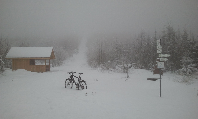 Auf knapp 900m hatte es dann bis zu 30cm Schnee bei -4,3 Grad. Da war weite Stücke nur an schieben oder tragen zu denken.