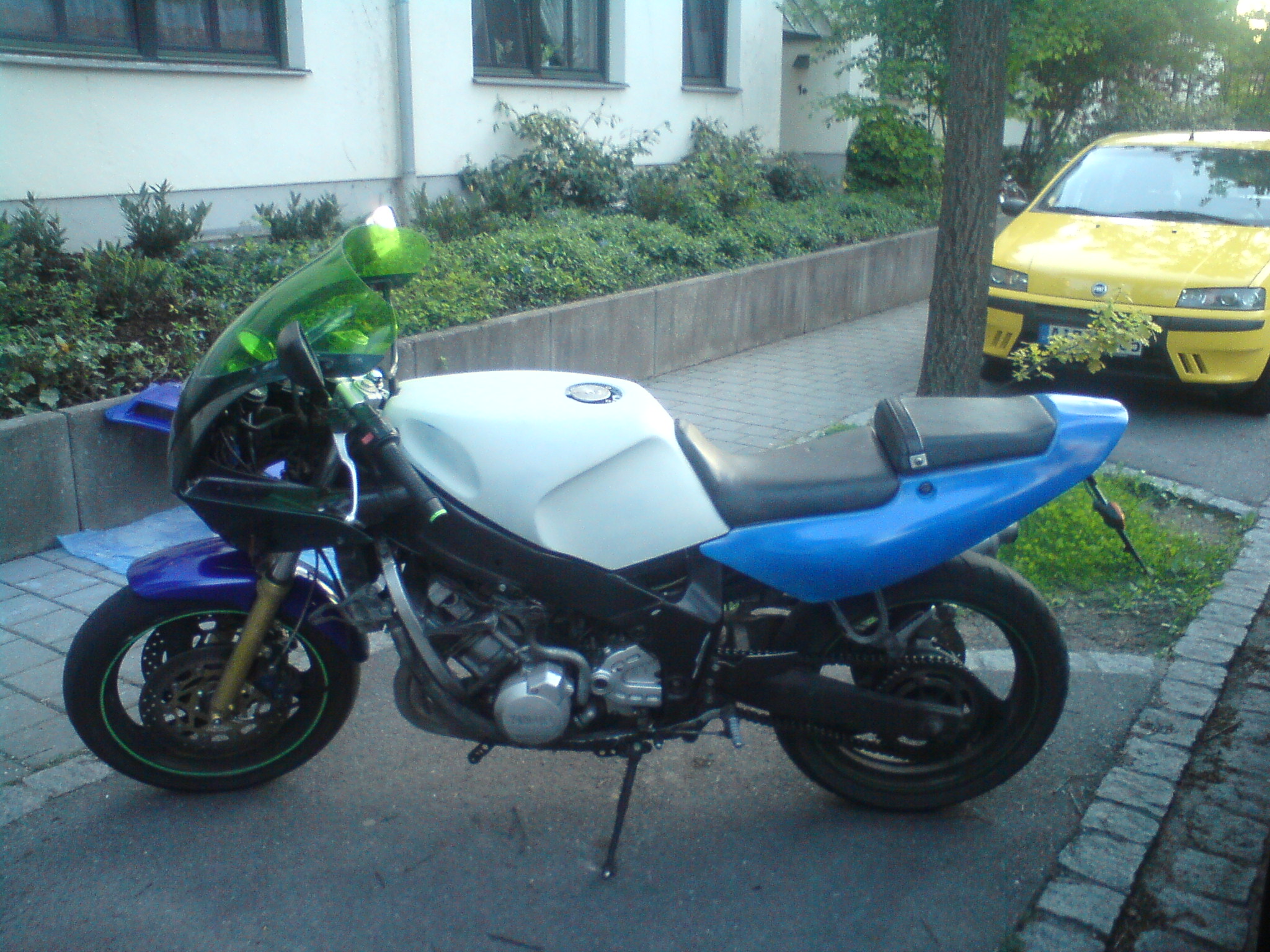 Mittlerweile hat sie auch ein geändertes Heck bei dem aus Zeitmangel noch die Innenverkleidung fehlt, vorne die Bremsanlage der Yamaha R1 die RICHTIG übel zubeißt, einen sehr angenehmen und spürbaren Druckpunkt und extrem kurzen Bremsweg hat - originale Bremsanlage hatte einen sehr schwammigen Druckpunkt und selbst wenn man voll reingelangt hat war der Bremsweg länger als wenn ich bei der neuen ganz sanft bremse.