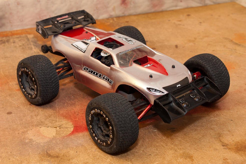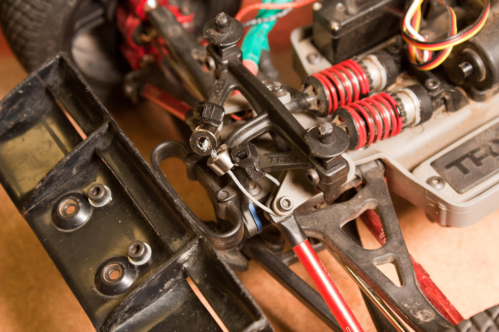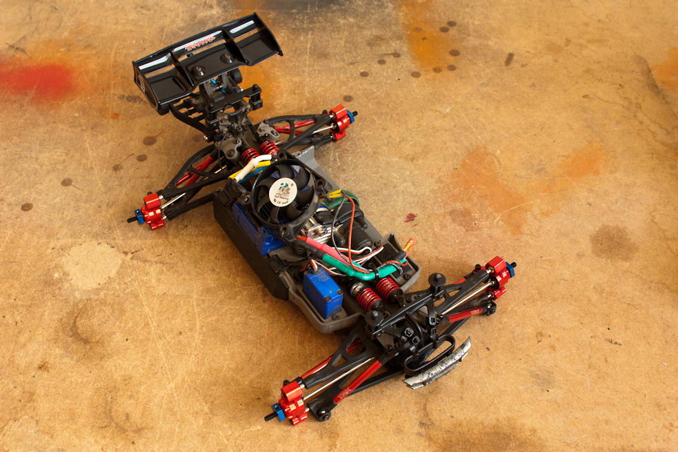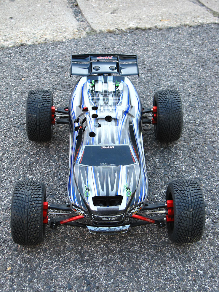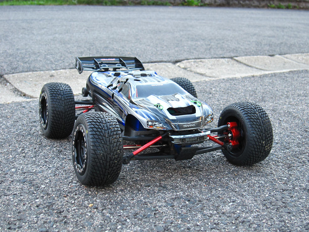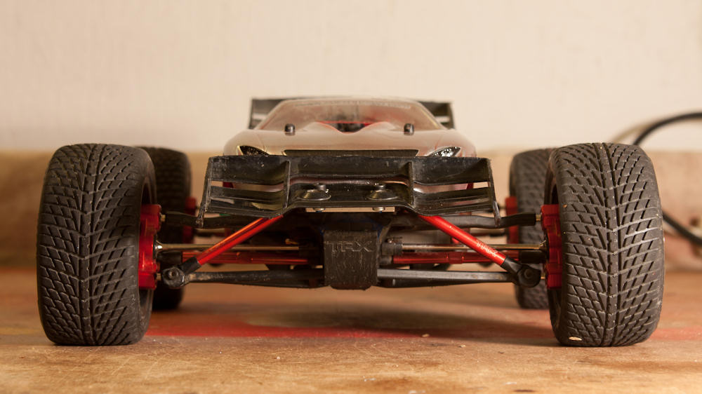 -vom Vorbesitzer waren schon Traxxas Aluminium Pushrods & Spurstangen, die Traxxas Wheeliebar sowie ein STRC Motormount & Kühlkörper & Alu-Dämpfergehäuse & Alu-Radmitnehmer verbaut
