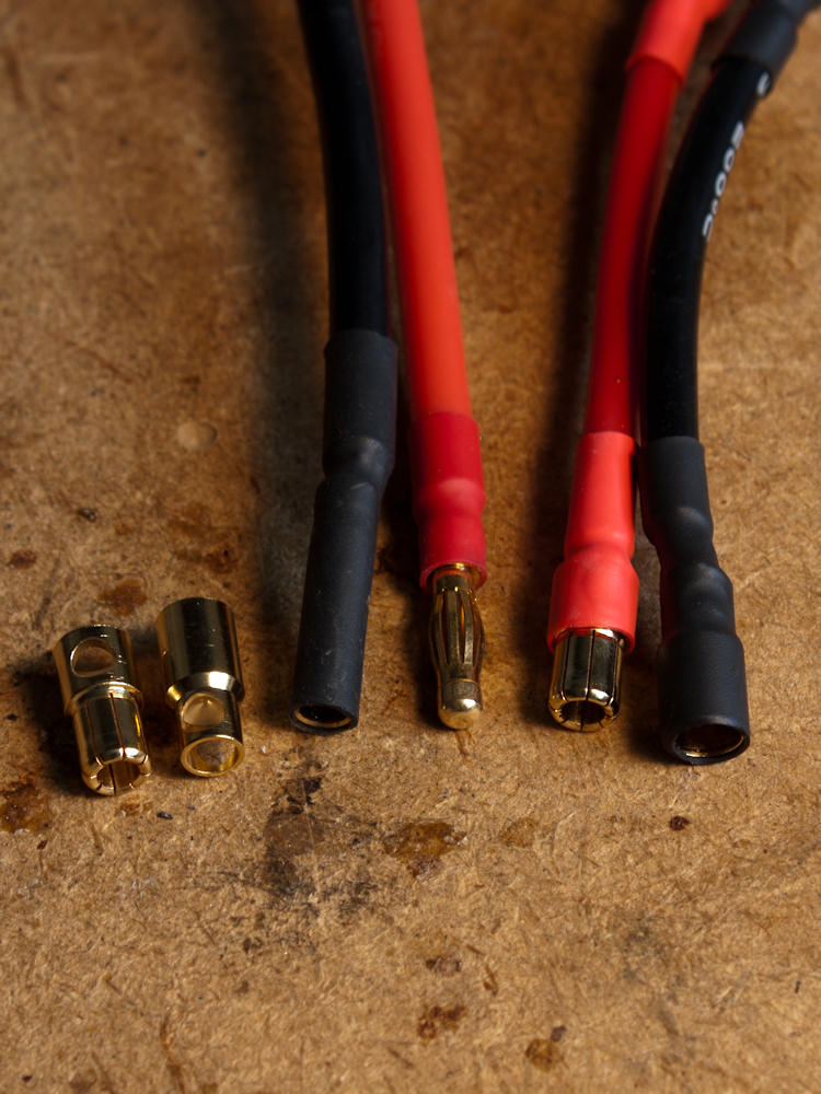 Kleines Update am E-Revo! Heute hab ich endlich mal 6mm Feinschlitzstecker in die Hände bekommen und auch gleich verlötet. Mit nem 150W-Lötkolben geht das echt fix... :thumbsup: