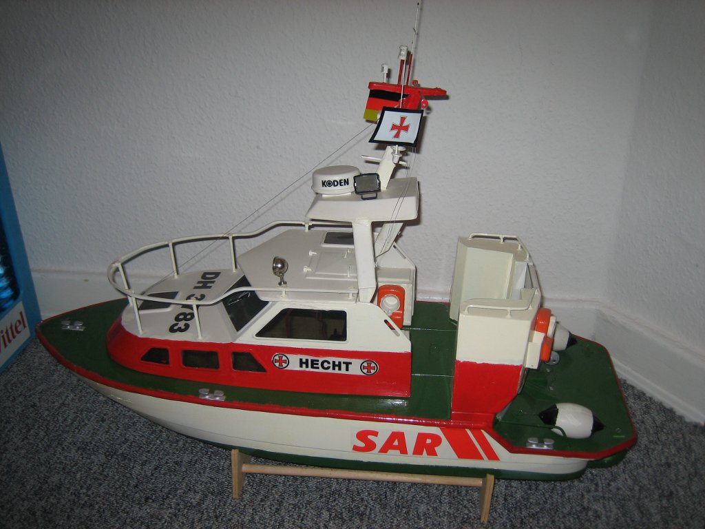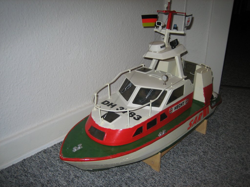 Fangen wir mal mit dem ersten Modell an: Graupner Hecht, Seenotrettungsboot, Jet-Antrieb, Speed 700 BB Turbo 12V Bürstenmotor, C507 Servos.