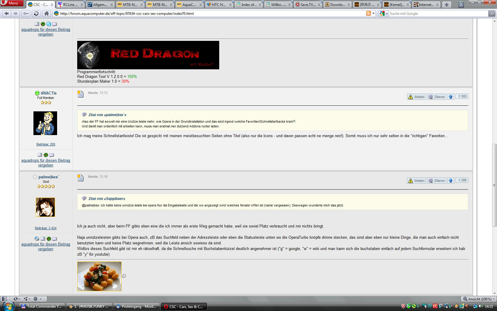 Ich mag meine Schnellstartleiste! Die ist gespickt mit meinen meistbesuchten Seiten ohne Titel (also nur die Icons - und davon passen echt ne menge rein!). Somit muss ich nur sehr selten in die "richtigen" Favoriten...Also der FF hat soweit min eine Unütze leiste mehr, wie Opera in der Grundinstallation und das sind irgend welche Favoriten/Schnellstartkacke kram?!