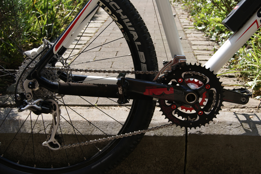 Ich habe gerade mal ein paar Fotos nach meinen ganzen Umbauten gemacht. Endlich habe ich wieder ein Fahrrad mitdem ich über Bordsteine brettern kann. ^^ War nämlich seit Anfang März mit meinem guten alten Rennrad unterwegs, bei Regen war das alles andere als angenehm. Ich bin im rot/weiß Tuningfieber. :P