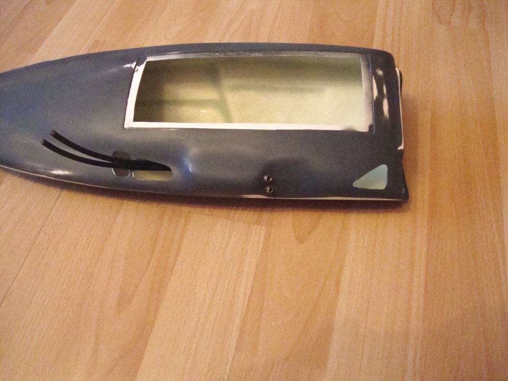 Ebenfalls eingeklebt ist die Wellenanlage und die Heckspiegel Verstärkung.