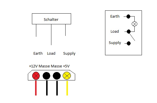 Wie schließe ich denn Schalter an das Molex Kabel an um z.B. beim befüllen der Pumpe immer an und ausschalten zu können ? (Rot, Schwarz, Schwarz, Gelb)