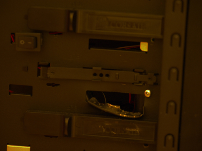 Ein weiteres Problem ergab sich bei der Installation des Ausgleichbehälters, der als Einschub in 2 5.25“ Schächte gedacht ist. Denn das Obsidian hat innerhalb unter jedem Schacht eine Halterungs-Querstrebe aus Metall, damit die Laufwerke ihren Platz auch beibehalten.