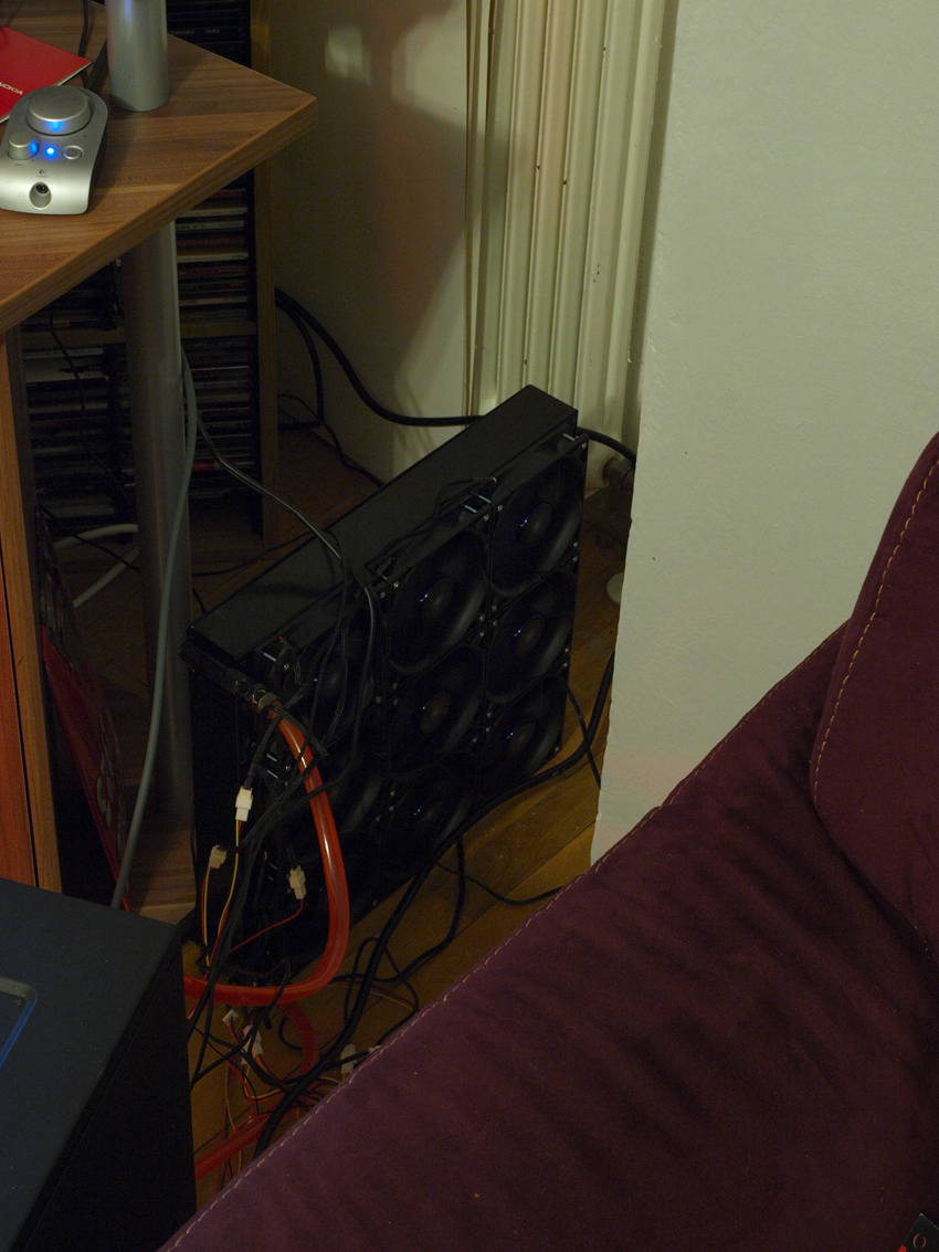 Radiator 1: Evo 1080, bestückt mit 9 Lüftern @6,6V, extern aufgestellt