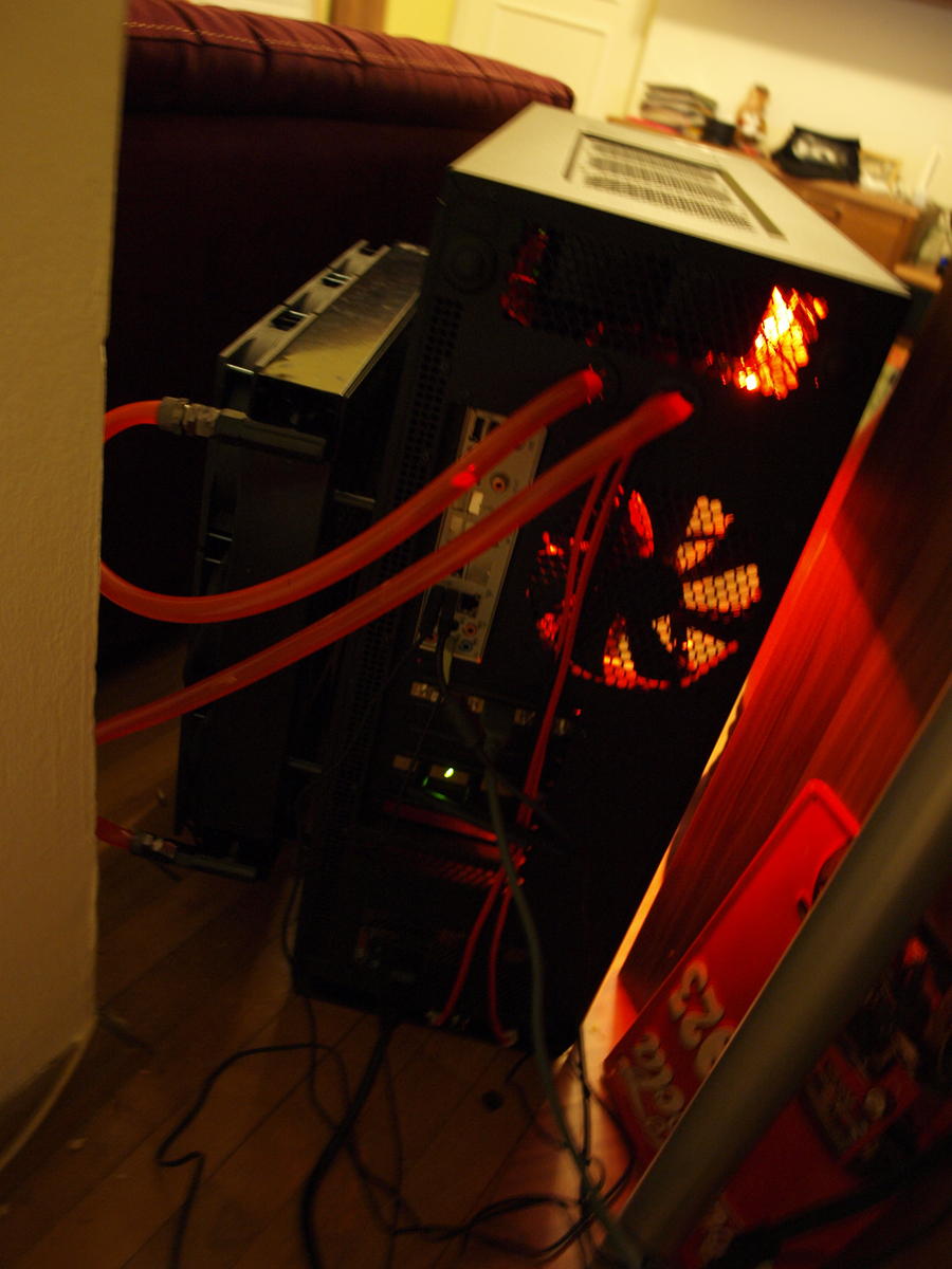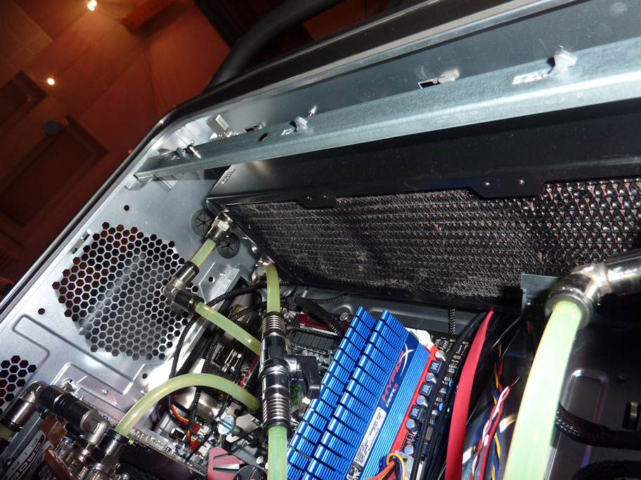 @Flexerl: Alle 12 Lüfter sind auf 6,7V heruntergeregelt (ungefähr 700rpm). Die Radiator-Lüfter sind dadurch alle kaum zu hören, wenn überhaupt.