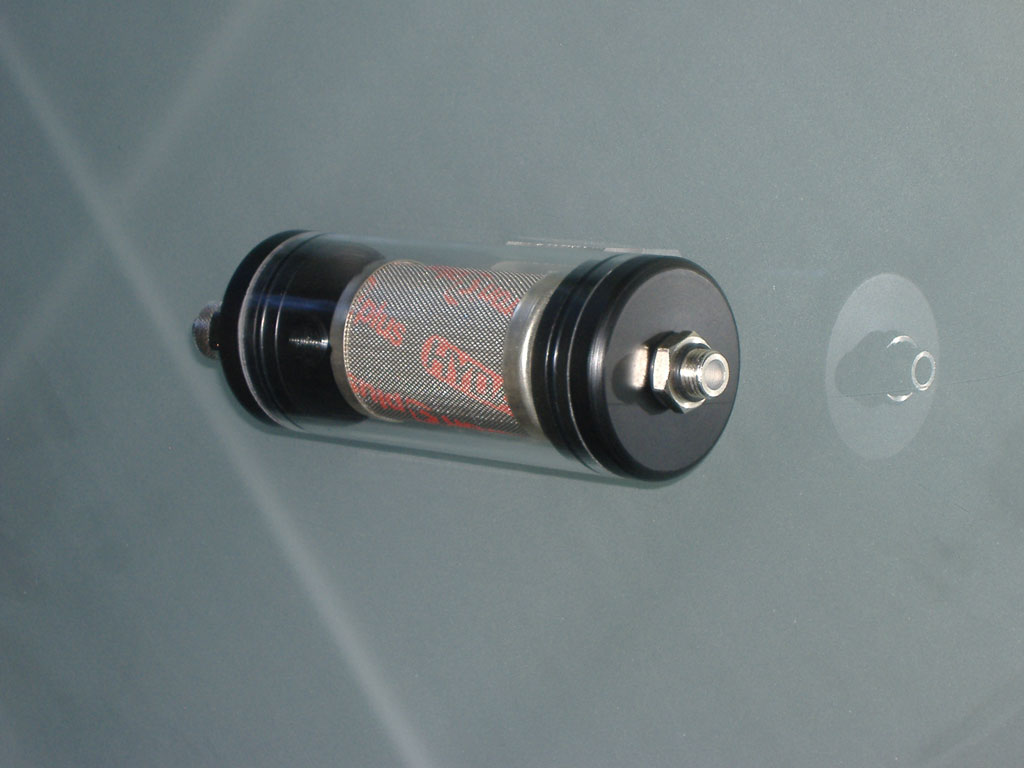 Der Verwendete Filter ist ein LKW Diesel Hydraulik Feinfilter, hat eine Innen liegende Dichtung und wird auf das Bodenstück aufgesteckt.
