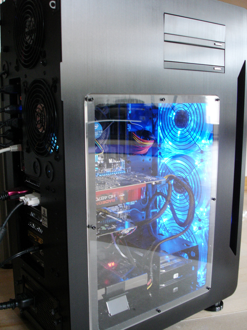 Hab auf die Schnelle ein paar Schnappschüsse gemacht. Das System sieht in natura deutlich besser aus als auf den Fotos. Eigtl. perfekt. Ist aber ja noch nicht fertig. Eine Grafikkarte soll noch integriert werden.