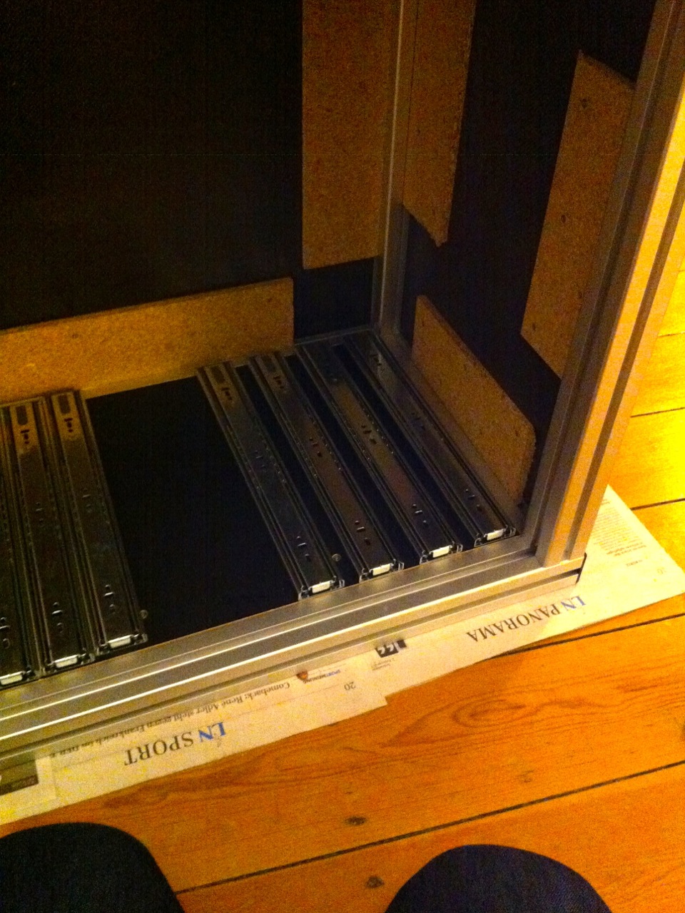 Jetzt die Auszüge. Ist für einen "Nicht-Fachmann" ganz schön fummelig die ordentlich, gerade und im richtigen Abstand einzubauen. Hoffentlich passt alles nachher...