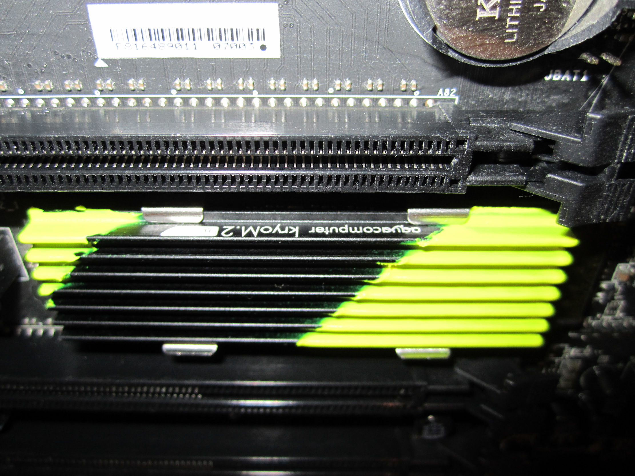 Die Southbridge Kühlung wird diesmal von oben (am Mainboard "stehend") montiert werden können (ansonsten wären die Gewindestangen des Kühlers im Weg!), weil ich den Grafikkartenverbund von PCI-E Slot 1 + 2 auf 2 + 3 verschieben muss. Grund dafür ist, dass der Abstand zwischen PCI-E Slot 1 +2 auf dem neuen Mainboard zu gering ist (FÜR MICH!) und ich somit weder kühlen noch verbinden (HB/SLI Bridge und Verschlauchung) könnte. Dafür muss ich jedoch die Gehäuserückseite nicht wieder bearbeiten wie beim Build davor.