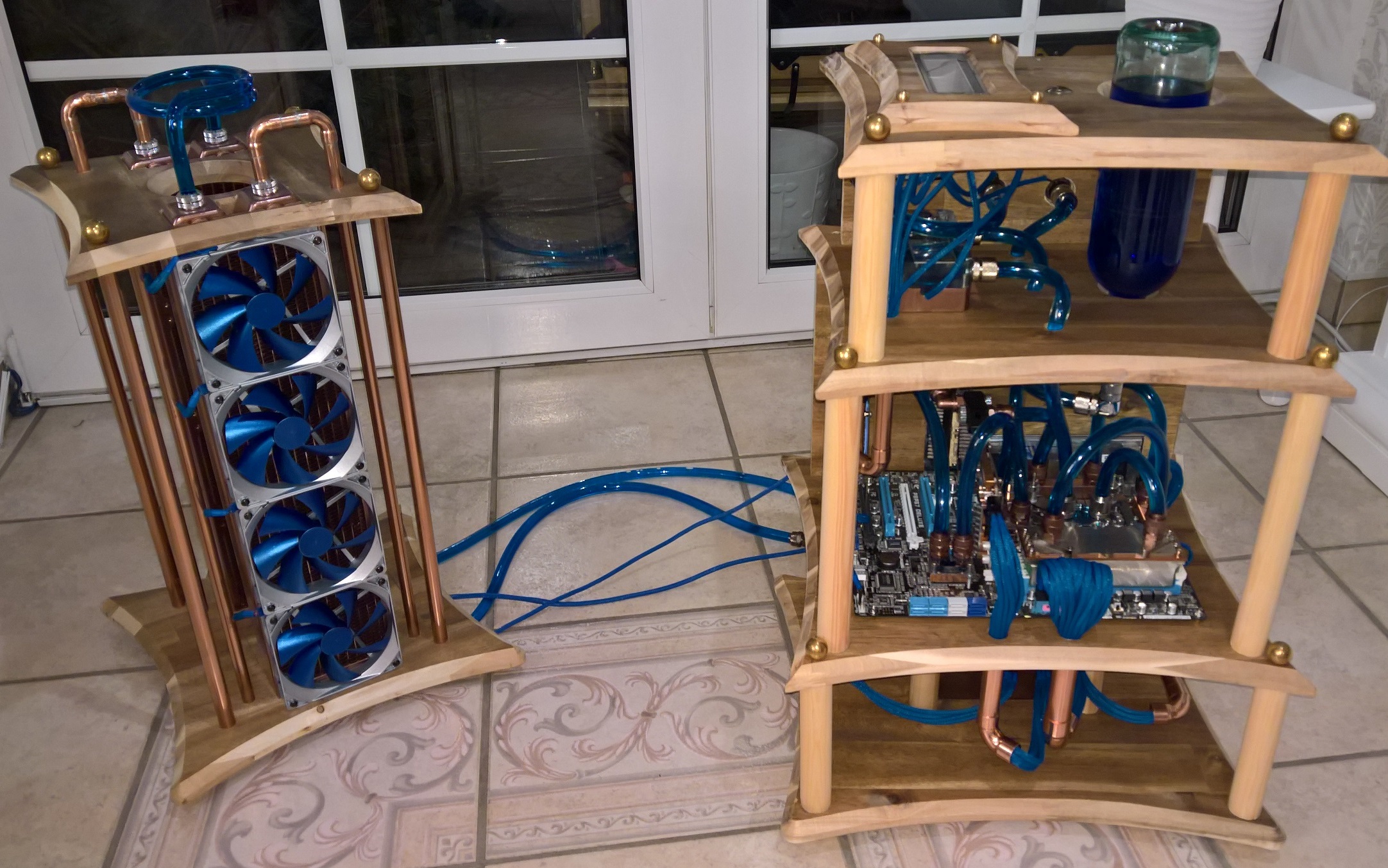 Ich habe in einem meiner CaseCons eine Weinflasche (nagut, war eigentlich eine Olivenölflasche) als AGB benutzt und mittels Glasbohrer ein Loch in den Boden und eines in die Wand an der Seite gebohrt. Ich habe 5 Flaschen "verbraucht", bis ich einen Nicht-Totalverlust hatte: