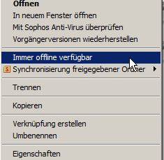 Weiterhin gibt mir der Explorer bei einem ganz bestimmten Netz-Laufwerk bei Rechtsklick auf einen Ordner gar nicht die Möglichkeit im Menü "Immer offline verfügbar". Diese Option gibts da einfach nicht. Hat das was mit speziellen Berechtigungen zu tun? (Habe natürlich Schreib- Lesezugriff dort)