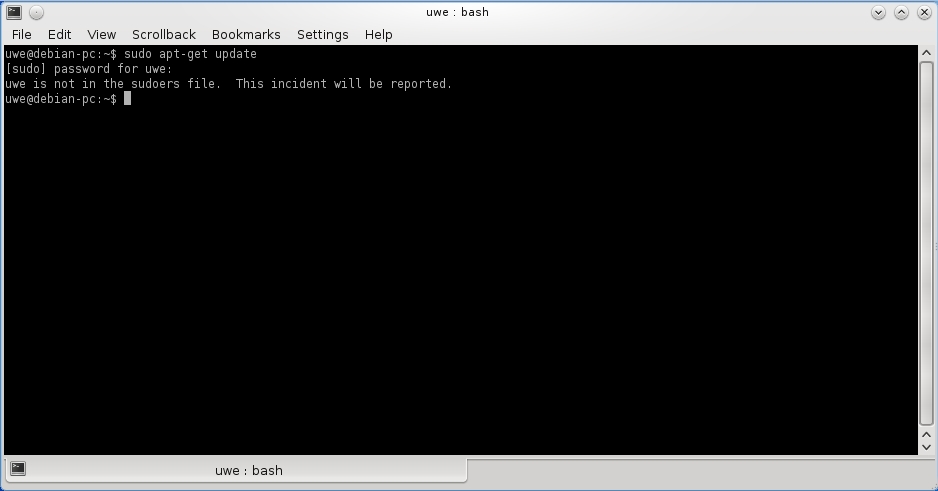 Du bist laut Benutzer berechtigungen nicht berechtigt sudo zu benutzen.
