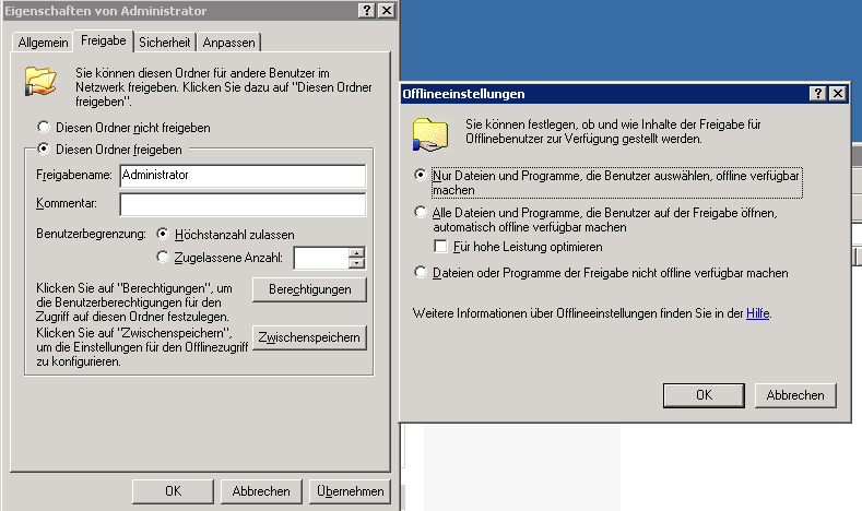 Grade mal geschaut. Ich habe gar keinen Reiter "Freigabe" am Server ?!