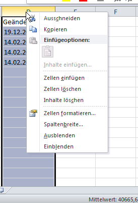 formatiert, aber egal ob ich es vorher oder nachher mache, es passiert nichts. Wohei weiß Excel denn wie es das aktuelle Datumsformat auslesen soll, oder geht das automatisch? 8|