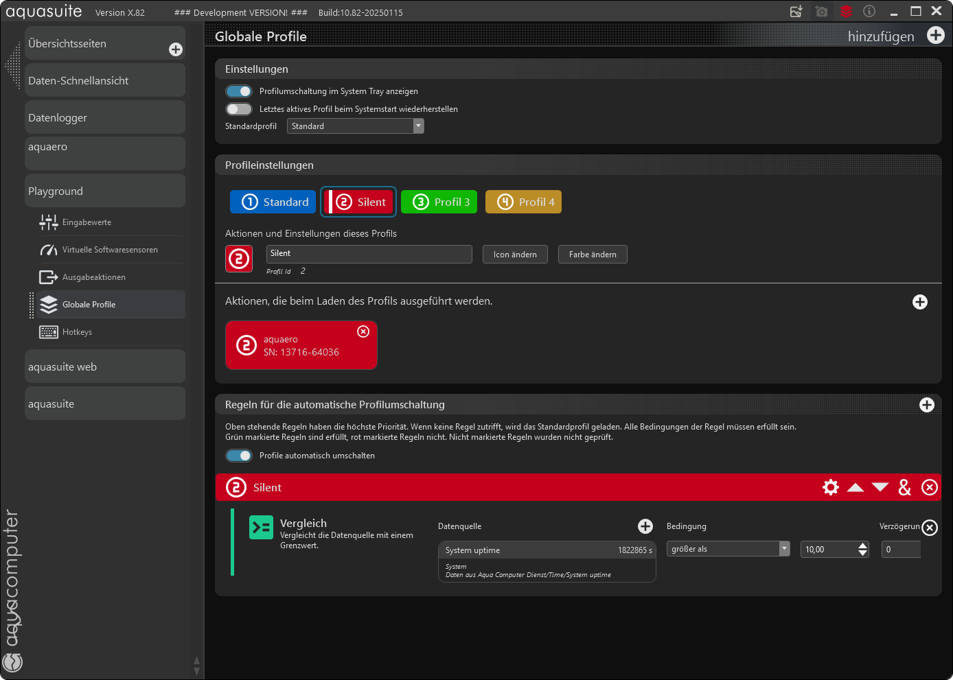 Beim Rechner-Start würde die Pumpe mit voller Leistung laufen und sobald man im Windows ist übernimmt wieder die Temperaturregelung. Das könnte man über den Uptime-Wert steuern. Als Beispiel: