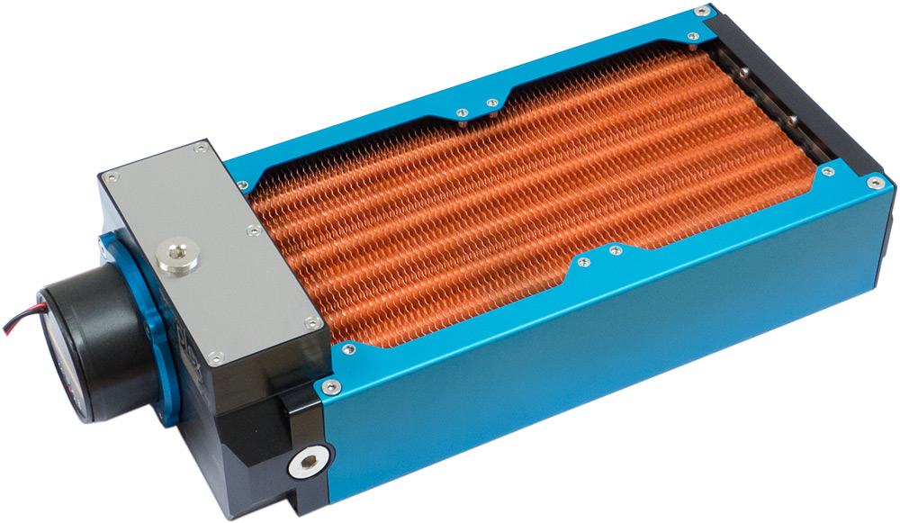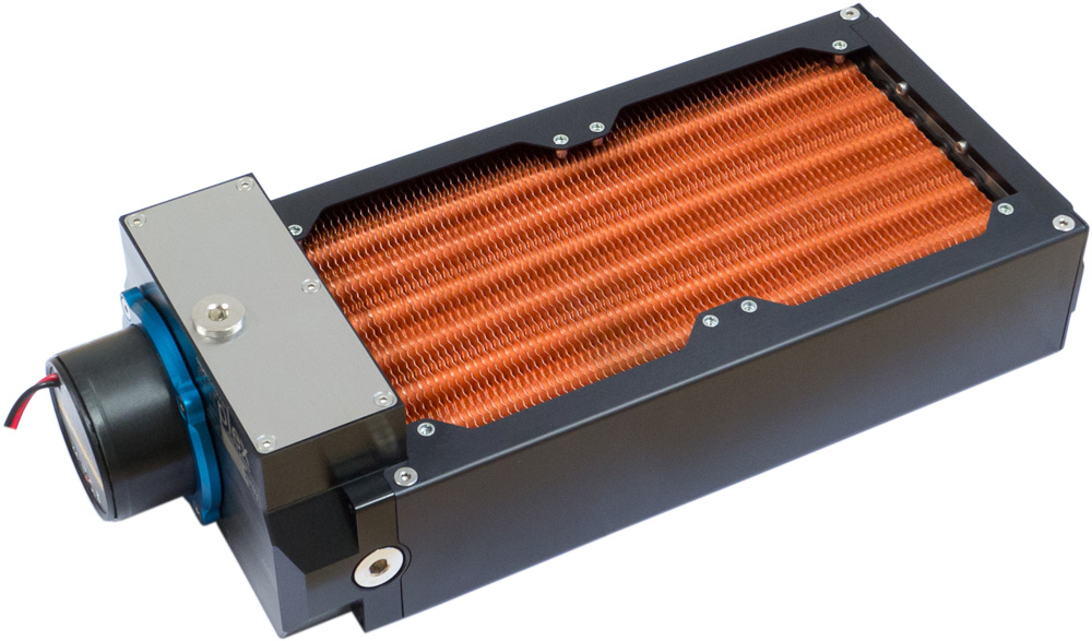 Bedenkt man, dass man sich Frontblenden für Filter, DFM und aquaero auch aus Messing anfertigen kann, und man Kupfer schwarz färben kann, ergibt sich ein hübsches schwarz-gelbes Gesamtbild. Passt auch zu dunklem Holz.