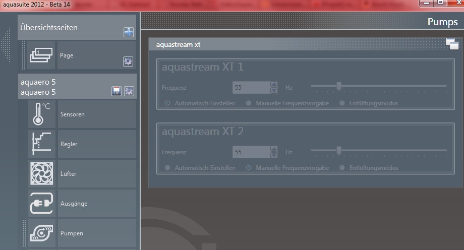 Die neueste aquasuite Beta 14 ink. Firmeware für das aquaero 5 habe ich installiert.