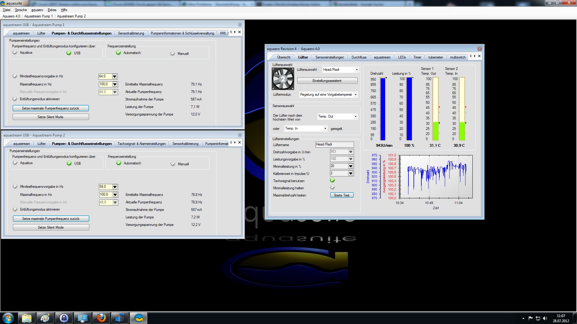 Die Lüfter laufen mit 1200rpm per Aquaaero gesteuert.
