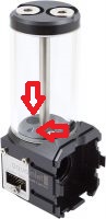 Die aquainlet XT-Varianten besitzen ein im Boden integriertes Plexiglasfenster und bieten Platz für den Einbau einer LED (Typ 5 mm, z. B. Art. 95025, im Lieferumfang nicht enthalten). Sie sind zusätzlich mit einer elektronischen Füllstandsmessung mit USB- und aquabus-Schnittstelle, einem konfigurierbaren Alarmausgang und einem externen Temperatursensoreingang ausgestattet. Zur Überwachung und Konfiguration steht die Software aquasuite zum Download zur Verfügung. Die vierpolige aquabus-Schnittstelle ermöglicht auch den direkten Anschluss an einen aquaero 5 Controller (nicht im Lieferumfang enthalten). Der Alarmausgang kann wahlweise als künstliches Tachosignal zum Anschluss an einen Lüfterausgang mit Tachosignalauswertung (z. B. des Mainboards) konfiguriert werden oder als Schaltausgang beispielsweise zum Schalten einer LED im Alarmfall. Zur Alarmüberwachung stehen neben dem gemessenen Füllstand auch der externe Temperatursensoreingang zur Verfügung. Der externe Temperatursensoreingang ist mit allen von Aqua Computer angebotenen Temperatursensoren kompatibel.