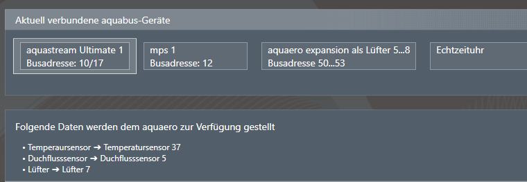 In der aquasuite > aquaero > aquabus wird bei einer verbundenen aquastream ULTIMATE folgendes angezeigt > siehe Screenshot