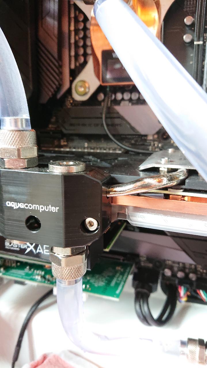 was haben in den falsch gemacht wenn aus der Stelle (siehe Foto, bei dem Röhrchen für den Backplatten Kühler) tröpfelt? Sonst sehe ich kein Austritt im gesamten Kreislauf.