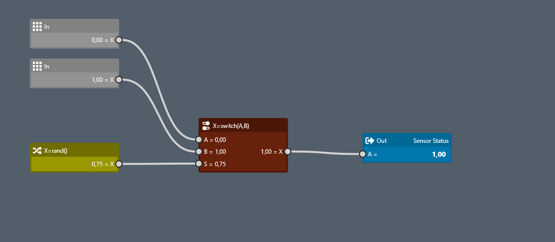 Ein Variablenblock könnte so funktionieren. Ein Werteingang und ein Triggereingang. Wenn der Triggereingang 1 ist, wird der Wert (vom Werteingang) abgespeichert und weiterhin ausgegeben. Der Triggereingang müsste sich so gut mit den Logikblöcken kombinieren lassen. Eventuell wäre das was für eine zukünftige Version. Würden sich noch paar mehr interessante Dinge realisieren lassen.
