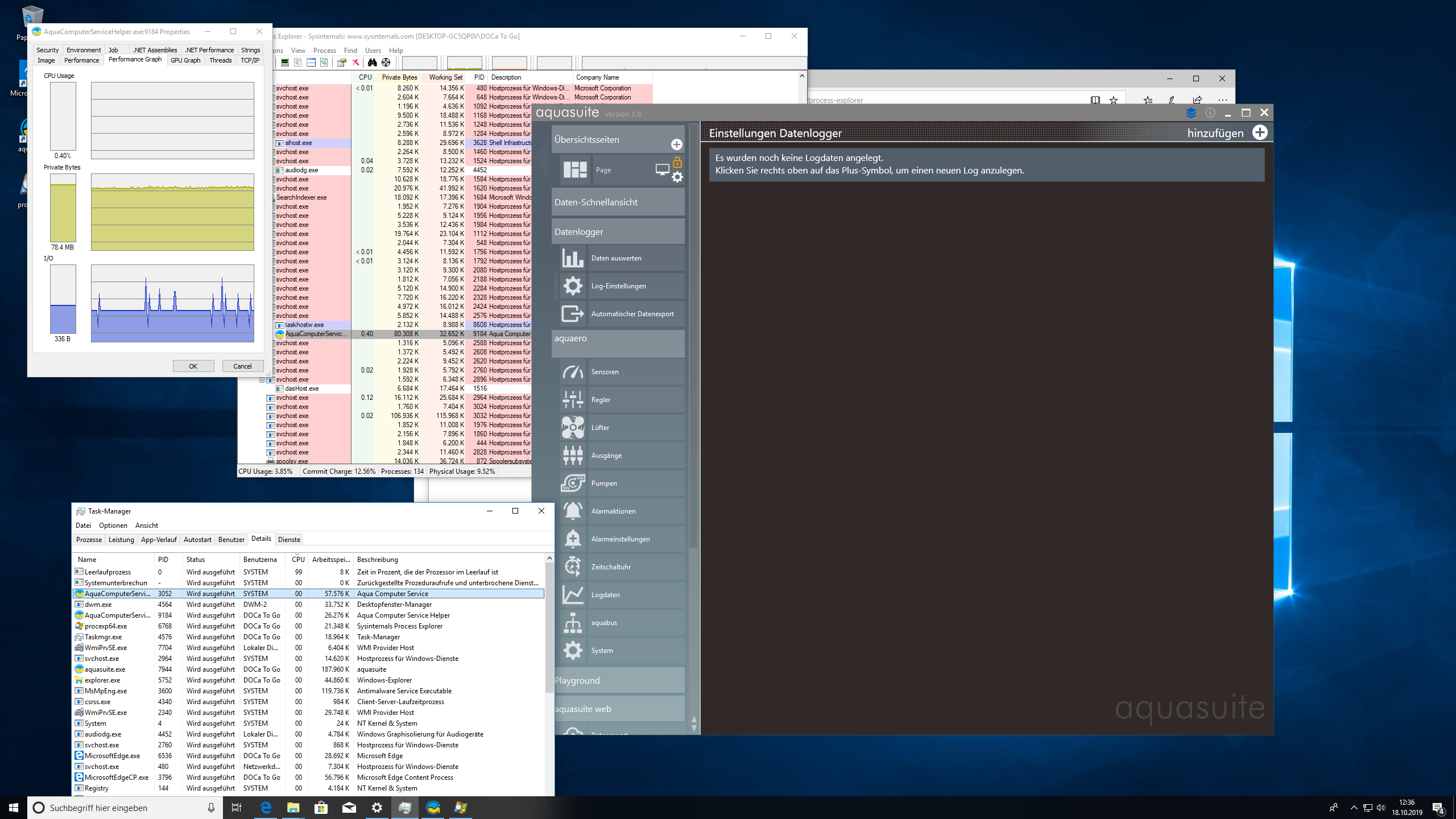 Habe meinen USB Stick mit der sauberen Windows 10 installation mal noch an nem Laptop getestet (mit schwächerer CPU) und auch da der Dienst auch 2%-4% CPU Leistung von einem Kern, auch komplett ohne Aquasuite Hardware, Logging oder Software Sensoren.