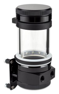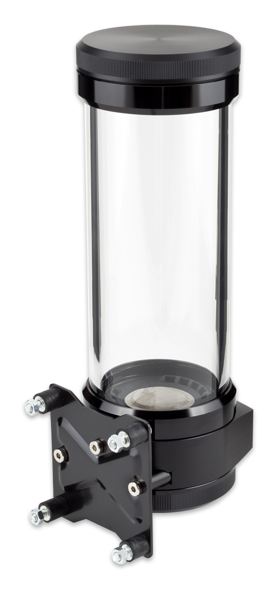 Der ULTITUBE D5 wird in den Längen 100, 150 und 200 mm angeboten, was wiederum Füllmengenvon 230, 350 und 470 ml entspricht. Der Durchmesser der Röhre beträgt 65mm. Das Ausgleichsbehälter ist kompatibel zu allen uns bekannten D5 Pumpen. Die Montage der Pumpe erfolgt in wenigen Sekunden einfach durch Anschrauben des Montageringes per Hand. Genauso einfach lässt sich bei Bedarf auch die Glasröhre abschrauben.